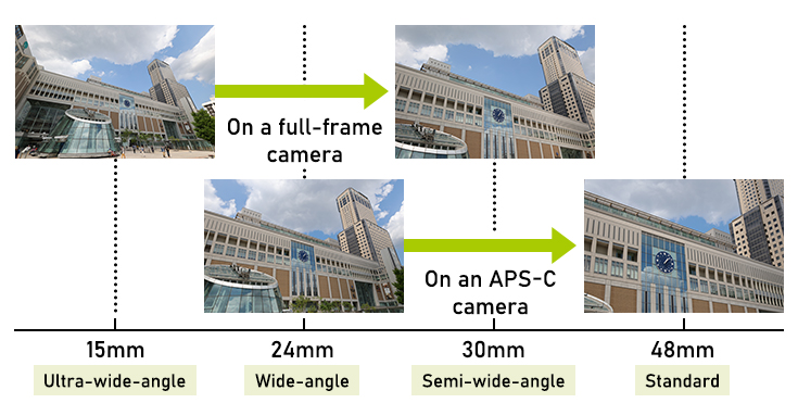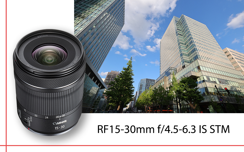When the RF15-30mm f/4.5-6.3 IS STM is attached to an APS-C camera, it works like a standard zoom lens that covers a full-frame equivalent focal range of 24 to 48mm. The wide end is wider than the RF-S18-45mm f/4.5-6.3 IS STM (29 to 72mm full-frame equivalent focal range).