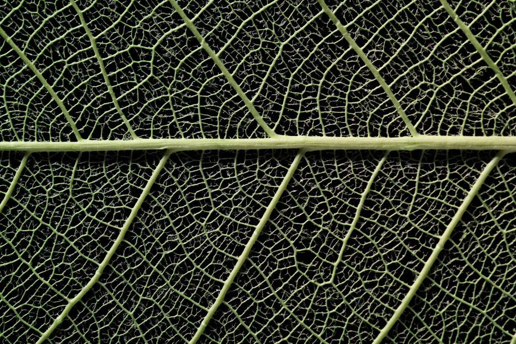 At 1.4x magnification on the RF100mm f/2.8mm, the vein structure of this leaf is shown in amazing detail.