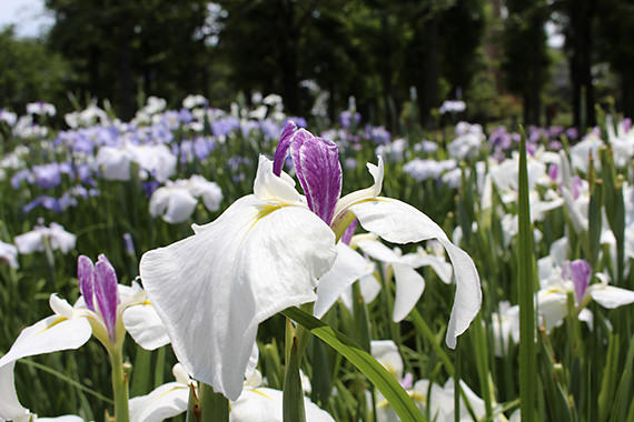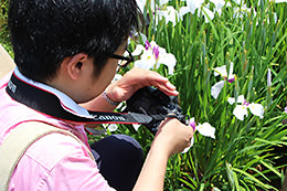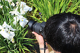 Next, I tried lowering the eye level. Although doing so allowed me to capture a wider background compared to the example in step 5, the flower was hidden behind the bud in the foreground. While extreme lowering or raising of the eye level may help to accentuate your photo, be careful not to go overboard.