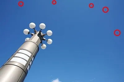 An example of a photo taken with dust on the sensor. (Dust spots circled.)