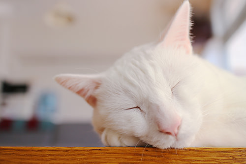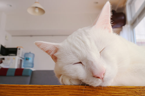 Take a shot with focus set on the cat. The cat stands out from the blurry background, creating a soft ambience.