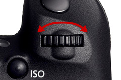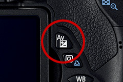 Turn the electronic dial while pressing the Exposure Compensation button. Turn to the right to increase the exposure, and to the left to decrease it.