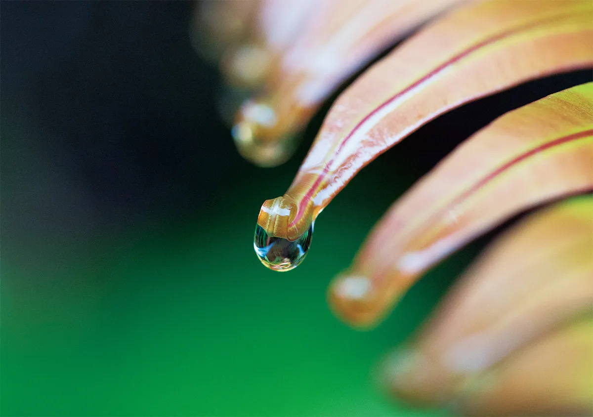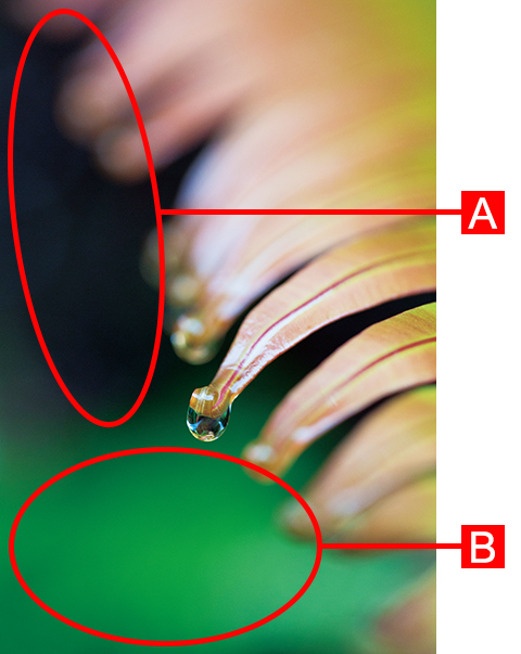 The water droplet at the tip of the leaf above was the main subject of the shot above, but I also wanted to convey a sense of space and depth. Here’s how I did it.