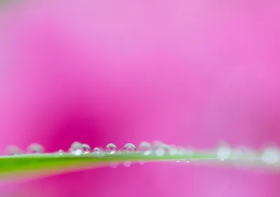 To capture the shot above, I made my way to a flowerbed immediately after the rain stopped. I found many droplets of rain on the narrow leaves. In the background were bright pink azalea flowers in full blossom. I decided to make the raindrops the main subject to depict a world of colours that only a macro lens is capable of bringing out.