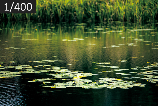 A fast shutter speed makes the image look stiff and unnatural. Use a slow shutter speed to smooth out water movement.