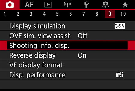 I find that it helps to remove all unnecessary information from my display. You can do so by going to the “Shooting info. disp.” menu.