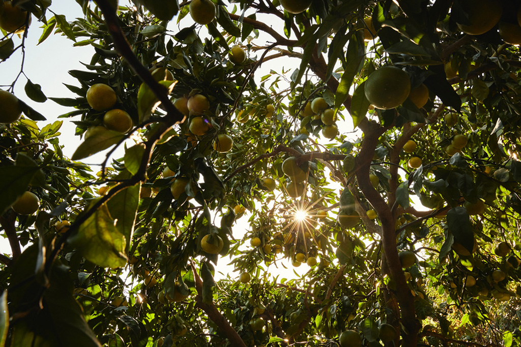 Citrus trees heavy with fruit, shot looking upward. Even the finest parts of the tiny leaves have beautifully resolved lines, and the resulting image is flawless despite the backlight. The depictive prowess of this lens can be enough to create impactful, compelling images.