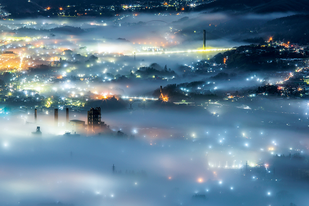 The Chichibu district where this shot was taken is a well-known spot for shooting a sea of clouds amid urban night scenery, and in particular, I wanted to showcase the colourful street lights that shone through the clouds. The large contrast between the bright and dark areas make it challenging to capture the colours properly in one shot, so you might find it more effective to take a number of shots with exposure bracketing, and then merge them into one HDR shot.