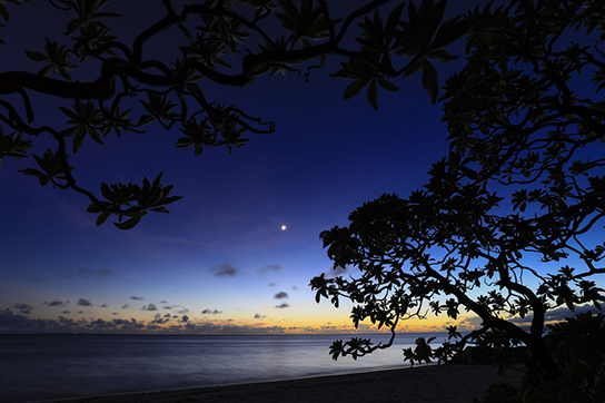 When I saw the scene, I envisioned framing the moon and the countless stars together with silhouettes of the trees on land. Placing the tree silhouettes around the moon and stars would lead the viewer’s eye to the main subject: the moon. To achieve that composition, I would need an ultra-wide-angle field of view, which was achieved by using the wide end of my ultra-wide-angle zoom lens.