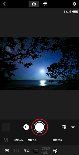 In Bulb mode, press the shutter release button (indicated in red) to start the exposure.