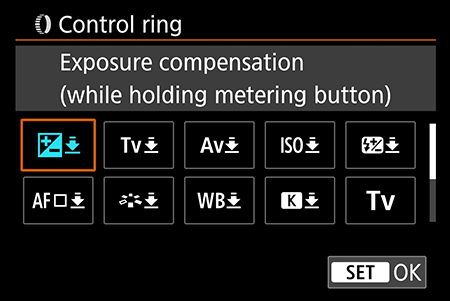 You can choose what you want the control ring to control in the “Customize control ring” menu. Many photographers use it as a quick way to change their most frequently accessed exposure setting.