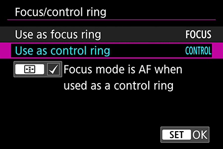 The control ring is the knurled ring on your RF/ RF-S lens. It works like an extra dial for adjusting assigned settings.