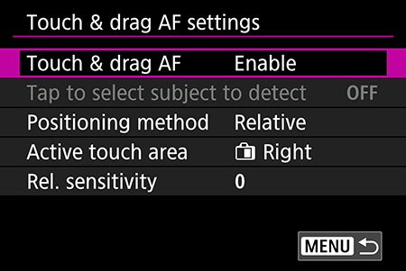 4. Viewfinder shooters: Enable Touch & Drag AF