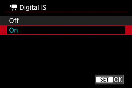 Where: Red menu → IS (Image Stabilizer) mode → Digital IS