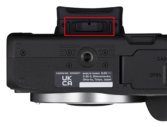 Take off the lens cap, look through the viewfinder and check the view. If it looks blurred, adjust the diopter until it’s suitably sharp and clear. On some cameras like the EOS R50 (shown above) and EOS R10, the diopter is a sliding switch at the bottom of the viewfinder. On other camera models, the diopter is a little knob somewhere around the viewfinder.