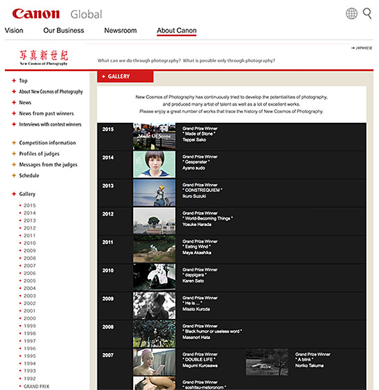 The New Cosmos of Photography is a yearly project that aims to discover, develop, and support new Canon photographers. It started in 1991, and 2016 marks its 26th year. It is a stepping stone to fame and success for young photographers, and many stepped into photography careers enjoying soaring success upon winning awards at New Cosmos of Photography.