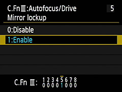 Even when you are using a tripod, the mirror's vibrations may cause camera shake. Set the [Mirror lockup] feature to [Enable] when you are photographing a nightscape through the viewfinder. With this feature enabled, you need to press the shutter button twice to capture an image.