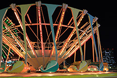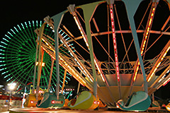 Attractions at an amusement park are captured at a slow shutter speed. I adjusted the speed and selected a long exposure time to create multiple trails of light in the image.