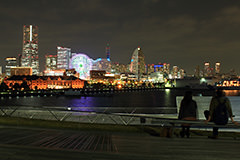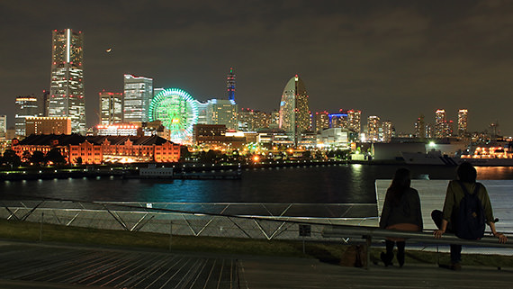 For this distant view of Yokohama, I selected the aspect ratio of [16:9] to crop away a part of the dark heavy sky on top, thereby stressing the night view and the couple.