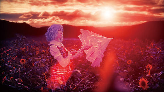 This image aims at a surreal depiction of a bewitching world with "Yuka Kazami," the strongest phantom in the popular game, "Touhou Project," as the motif. By making effective use of the strong sunlight and the halation created, I took an HDR shot so as to retain the details of the sky. With a full-frame camera, which is rich in gradation, you can challenge tone expression with a huge contrast in the brightness.