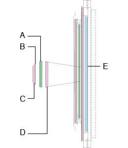 The structural difference between the low-pass filter of the EOS 5DS and that of the EOS 5DS R lies in the presence of a phase plate at the back of the infrared absorption glass. At the same time, the roles of low-pass filter 1 and low-pass filter 2 vary too. Light is not split further in the case of the EOS 5DS R. The split light is combined instead.