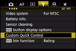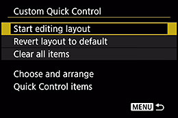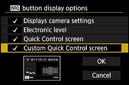 To hide the [Custom Quick Control Screen], deselect the checkbox on the menu screen. Choose how you want the display to appear according to your own preference.