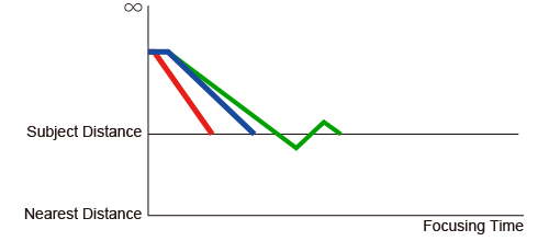 As the Dual Pixel CMOS AF does not switch to contrast AF near the focal plane, AF speed is twice as fast compared to that of the Hybrid CMOS AF (based on Canon's data). As can be seen in the graph above, the focusing lenses move to the target in almost a straight line.