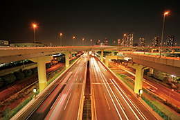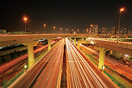 Nightscape photography allows you to enjoy different styles of expression by varying the camera settings. With the shutter left open for a long duration, you can capture the light from vehicles and trains in colourful streaks, which is often referred to as "light trails". Length of the shutter speed setting determines whether light trails created can help to accentuate your photographic works. If the shutter speed is too fast, light trails may be too short. To capture lights such as those of vehicles that drive past you, choosing a low ISO speed and a slow shutter speed helps you to produce a dynamic shot of the light trails. In particular, you are recommended to choose an elevated location that overlooks an expressway or highway with a high traffic volume.