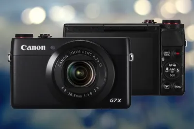 The "PowerShot G7 X" (centre) offers a well-balanced mix of the characteristics found on the "PowerShot G1 X Mark II" (left), which comes with a 1.5-inch sensor, as well as the "PowerShot S120" (right), a compact-sized camera for casual use, both members of the "PowerShot" series.