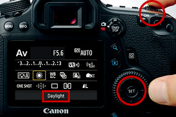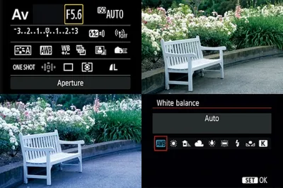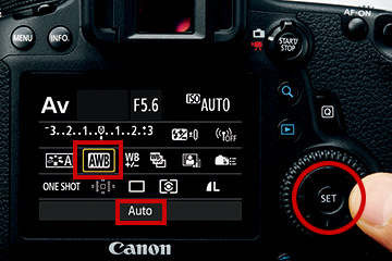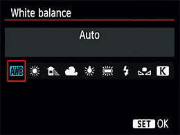 Pressing the Quick Control button launches the screen on the left. This is the fastest way to access the white balance settings.