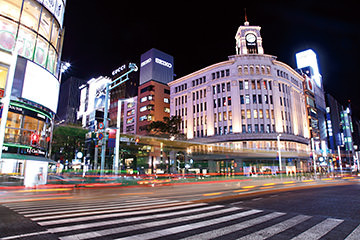 To shoot this photo, I aimed at the light trails of cars moving through an intersection. As the picture was taken at close range as compared to the aerial shot , the finished photo brims with an even greater sense of motion. 5 shots were taken at a shutter speed of 4 sec here, and then combined using the Compositing Tool in the “Digital Photo Professional” image processing software that comes with the camera. I observed the changes in the traffic light along with the patterns of the car movements, and took shots of the traffic at the intersection going straight ahead, turning right and turning left. I then combined the respective shots into a single photo and made the paths of the light trails denser.