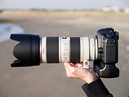 The battery grip comes in handy when you apply force to the lens tube, such as when you are turning the zoom ring or the focusing ring during MF. It helps to provide a firm grip of the camera in both the vertical and horizontal orientations, thus preventing camera shake even when there is a sudden rotation in the axis, such as when you zoom in or zoom out while tracking your subject.