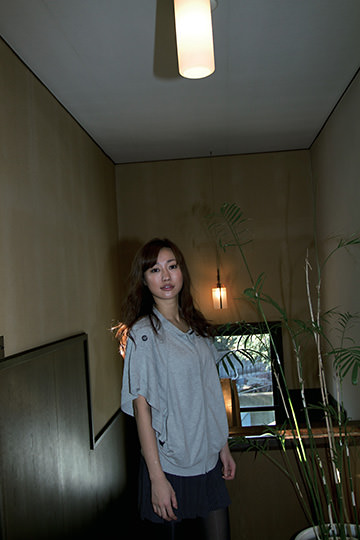"Ceiling bounce" is a technique for controlling the brightness of the background. Not only so, it can also be used to soften the light at the same time. This technique can be employed in a wide variety of ways for your indoor shots, so you are encouraged to give it a try. (Reported by: Yasuhiko Kani, Model: Sayuri Kurahashi (IARA))