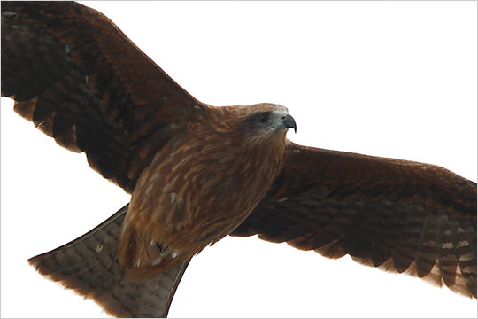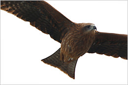 I aimed at a black kite that was flying toward me. The EOS 7D Mark II performs extremely well in capturing birds soaring in the sky; you can produce successful shots most of the time regardless of which setting you choose. What you need to do is to simply combine AI Servo AF with high-speed continuous shooting to track the subject.