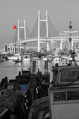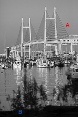 The main subject in this picture is the suspension bridge in the background. In order to bring this out, I selected the cluttered pier connected to the port in the foreground as my secondary subject. My aim in choosing such a secondary subject was to express the bustle of the harbour.