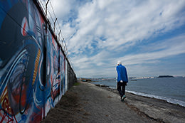 This graffiti art on a wall along the coastline was rather attractive, so I captured the wall as the main subject. The sky, the sea, the graffiti, as well as the clothes of the passerby were all blue in colour. Matching the colour of the secondary subject with that of the main subject helps to add impact to the entire photo. Such coincidental encounters alter the essence of your shots dramatically.