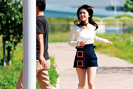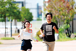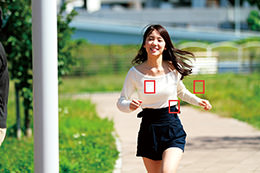 In the scene of a man and a woman running together, the EOS 7D Mark II focuses only on the woman whom it detected initially and does not shift focus even when the man moves in front of her. On the other hand, the selected focus point moves left and right for each frame in the EOS 7D, indicating that the focus position is being switched. In addition, the AI Servo AF on the EOS 7D Mark II also has a very high focusing accuracy as the focus point is precisely selected relative to the face. In the test above, the EOS 7D Mark II is correctly focused in all the cuts but several of the cuts are out of focus for the EOS 7D.
