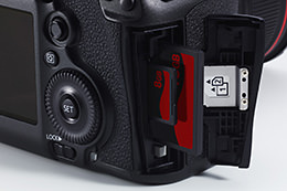 As with the EOS 5D Mark III, the EOS 5DS and 5DS R both come with double card slots that support CF and SD cards. While the recording method remains the same as that of the EOS 5D Mark III, taking into consideration the huge data size, some additional features that will come in handy are [Record separately] for recording in the RAW or JPEG format, and [Auto switch card] to switch to the other card and continue recording seamlessly.