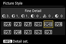 A new menu option, [Fine Detail], is added for the first time to the preset Picture Style effects. This option reduces the [Fineness] and [Threshold] of sharpness, and excels at faithful and delicate expression of the actual object with a relatively subtle [Contrast] setting (compared to the [Standard] contrast).
