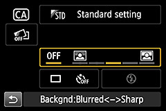 Kobayashi The [Background blur] option can also be found on the existing models. On the EOS 100D, however, you can now simulate the background blur effect in real time on the Live View screen while you are shooting. Also, the parameters available on the operation screen vary with maximum aperture of the lens in use.