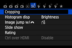 [Cropping] function is added newly to the EOS 100D. Stored in the Playback 2 menu, you can adjust the size of the frame using your fingers on the touch screen.