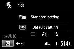 Nashizawa You are right. Although the [Sports] mode can also be used to capture children who are moving around, it does not take the color tone into consideration. Also, the [Kids] mode allows you to fire the built-in flash at a dimly-lit place to brighten the subject. Meanwhile, the [Candlelight] mode controls AE with the Center-weighted average metering mode to prevent the subject from turning out dark, while the center AF point is used as a fixed focusing point to avoid the focus from being affected by the light source.