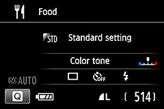 [Food] in the Special scene modes is programmed to capture a more appealing shot of the food by increasing the exposure and adjusting the white balance and Picture Style.