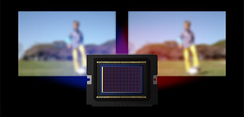 Although there is no line that separates the left and right photodiodes, they function separately to achieve focus. During shooting, image signals are stored in the same way as conventional image sensors. In other words, each pixel plays two roles at the same time.