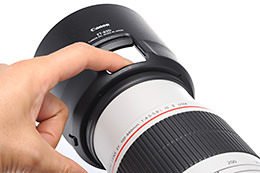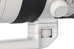 The tripod mount can be split into two parts by turning the screw in the middle. When removing the tripod mount on previous models, there used to be a need to pull out each ring from the rear end of the lens but in the new model, the tripod mount can be speedily detached with the lens still fitted.
