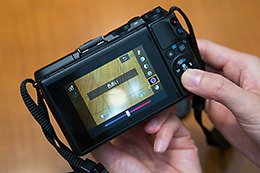 Kawano The concept is slightly different. Although the "Creative Auto" mode uses easy-to-understand expressions such as "Blurred" and "Brighten/Darken", it does not tell you what goes on inside the camera. "Creative Assist", in contrast, displays the five settings including "aperture" and "exposure compensation" in simple terms, and replaces them with the appropriate terminology on the playback screen. Our aim is to facilitate users' understanding of the different settings.