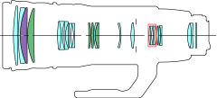 Designers came up with an extender that consisted of eight lens elements in four groups. This optimized optical system was selected after its designers paid attention to the issue of aberrations. But it turned out that the extender lens group was too large and interfered with the optical system for the in-lens image stabilizer. However, the designers persisted with the placement of the extender lens group, imploring mechanical designers to develop a thinner image stabilizer unit.