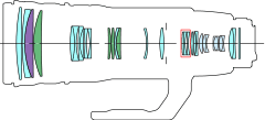 When the composition of lenses and lens groups was finalized, the EF200-400mm f/4L IS USM Extender 1.4x was given 25 elements in 20 groups for normal use. Once the extender was inserted, however, the number jumped to 33 elements in 24 groups - the greatest number of elements and groups in the history of EF lenses.