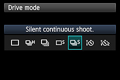 Silent continuous shooting is now available on EOS 5D Mark III. You can set it from the Drive mode menu.