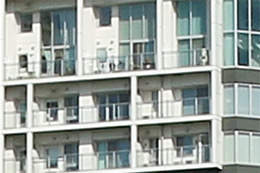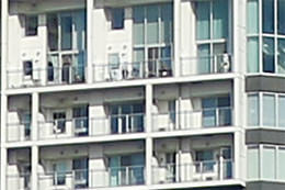 If you compare the image quality at 18 mm, you will find that the fine details of the buildings are slightly blurry on the EOS 7D but very clear on the EOS 7D Mark II.